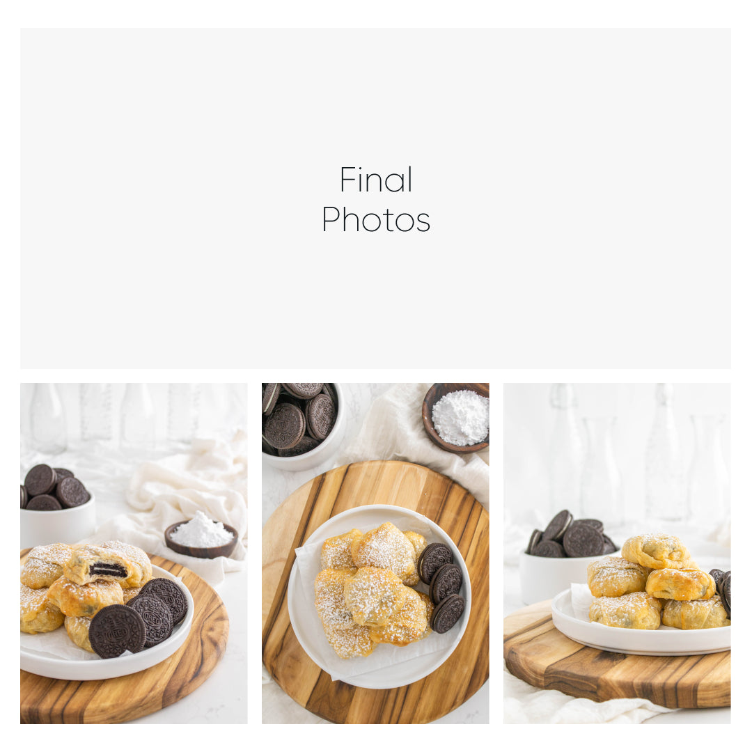 This is an original but common recipe, that includes ingredients such as Oreo cookies, crescents rolls & confectioners sugar. See all the ingredients in the ingredients image.